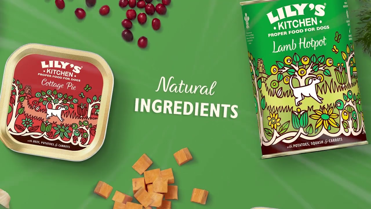 Lily\'s Kitchen slow-cooked lamb. 55% lamb, fresh herbs.